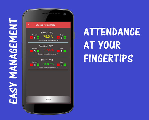 Wondering how does this app maintain attendance with daily changes. Well to do that, all you need to do is wait for 6 pm IST for a notification which uses only 1-2 taps to get information WITHOUT even opening the app! If you ever miss the notification, you could open the app and do the above mentioned.