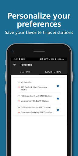 Resmi Bay Area Rapid Transit (BART) uygulaması geldi.Yolculuğunuzu planlamanın ve doğrudan Bart'tan verilerle, resmi hizmet uyarılarıyla birlikte doğru gerçek zamanlı tren kalkışları elde etmenin en kolay yoludur.Turistler: