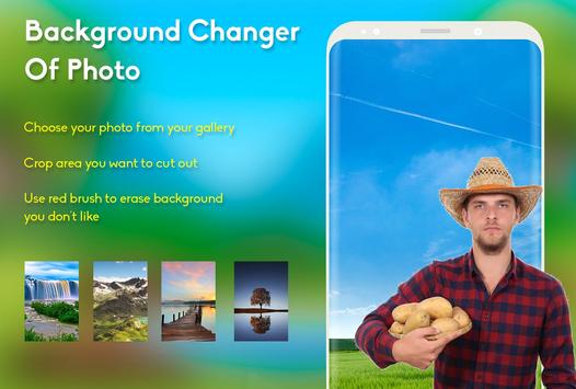 Change background With your creativity and imagination you can have fun removing the objects, changing backgrounds Change photo background app lets you erase your photo or its background Photo Backgrounds Change the background of your photo and put it onto a new background.