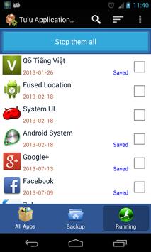 - Add "Stop them all" button to clean all running apps. This feature will be useful for the low RAM devices. It also saves your battery.