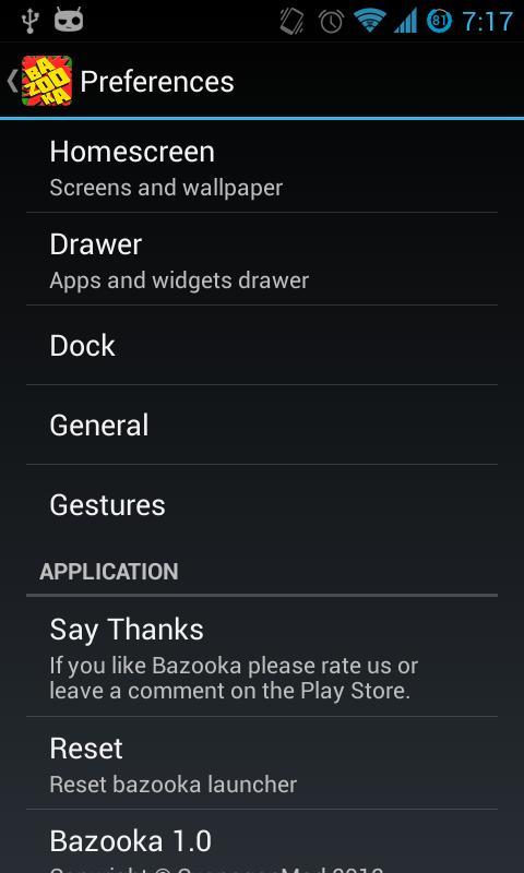 Bazooka, Launcher, Trebuchet, Themes, Home application, CyanogenMod.