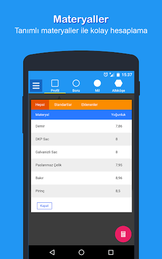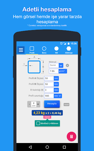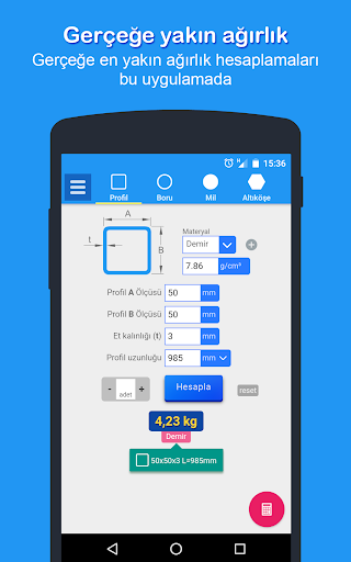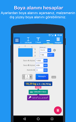 PROFİL, I PROFİL, H PROFİL ve KÖŞEBENTLERDE GERÇEĞE EN YAKIN AĞIRLIK ve BOYA ALANINI BERABER HESAPLAYAN BAŞKA PROGRAM PLAY STORE 'DA YOK.