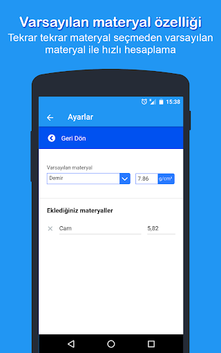 Ağırlık hesaplaması yapabileceğiniz malzemeler: