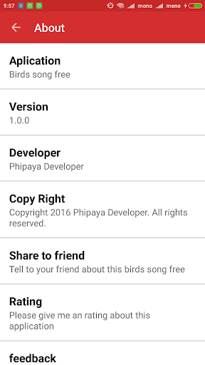 Kuşların sesinin güzelliği dinlemek için çok iyidir. Kuşların sesi rahatça akla olabilir. Dünyada bir sürü kuş ve çeşitli ses, Kuş severler genellikle kuşların seslerine hakimdir. Bu uygulamada kuşların sesi ve kuşların sesinin, terapinin ve suyun sesinin açıklaması var.