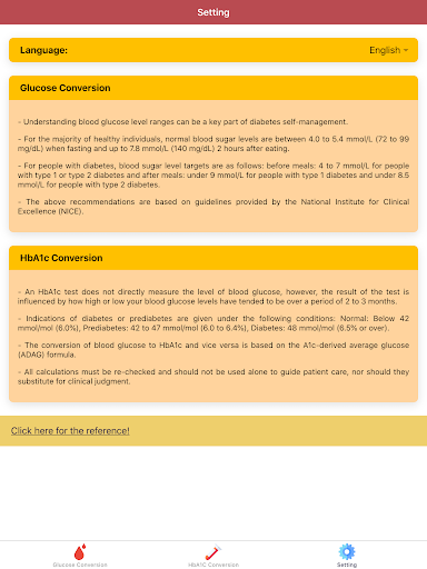 "Kan Şeker Converter Pro: Glikoz Monitörü" in iki ana özelliğimiz var, yani glikoz dönüşümü ve HBA1C dönüşümü. Glikoz bölümünde, hasta kan şekeri veya kan glikoz seviyelerini MG / DL'den mmol / L'ye dönüştürebilir ve bunun tersi de geçerlidir. "Kan Şeker Converter Pro: Glikoz Monitörü", diyabetik olmayan, tip 2 diabetes mellitus (DM) ve tip 1 diabetes mellitus (DM) için normal kan şekeri veya kan şekeri aralığı hakkında bilgi sağlar. Böylece yüksek veya normal kan şekeri veya kan şekeri seviyesine sahip olup olmadığını kontrol edebilirsiniz.