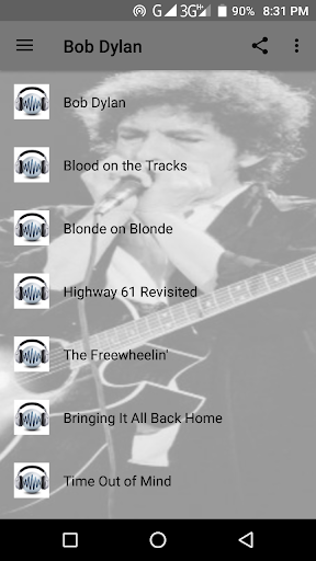 Bu uygulama size büyük ve efsanevi Amerikan şarkıcı-söz yazarı Bob Dylan birinin ikonik eserlerini getirir. Bu uygulama tüm albüm şarkıları içerir.