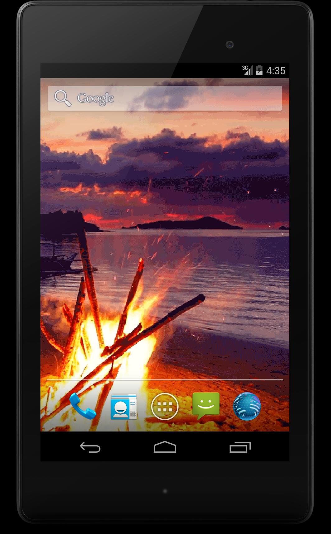 How to use it: press "Home" > long press on background > choose "Live Wallpapers" > select "Bonfire HD Livewallpaper" from list.