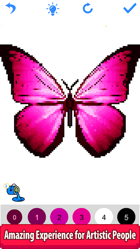 Daha önce hiç olmadığı gibi numara renklendirmeyi deneyimlemek ister misiniz?Kelebek rengine göre indirin ve kelebek kanatları küçük sanatçılarınız için bir resim tuvali olacak.Bu uygulama yaratıcılığı eğitmek veya bilişsel beceriler ve yönetici işlevleri geliştirmek için kelebek piksel sanat boyama sayfalarına sahiptir.Bu ilginç resim oyunları yaratıcılığınızı teşvik edecektir.Yani, bu yaratıcı anı yakalayın ve bu eğlenceli uygulamadan kelebek görüntülerini küçük sanat eserlerine dönüştürdüğünüzde gurur duyun.Birinin boyama sayfalarında ifade edilen duygularını görebildiğinizde gerçekten büyülüdür.Onlara ince motor becerileri üzerinde çalışma fırsatı verecektir.Bu, çizim becerilerinizi ve stres rahatlama terapisi için Zen Bahçe sahnelerini uygulamak için harika bir etkinliktir.Her yaşın çizimi bitirmeye çalışması da eğlencelidir.Konsantrasyonunuzu ve kararlılığınızı eğitir ya da sadece kendi yolunuzu renklendirmek, çizim ve renklendirme becerinizi uygulayın.Bu, piksel görüntülerini nasıl boyayacağınızı bilmenize yardımcı olacaktır.