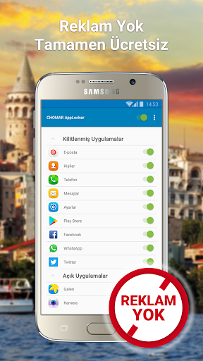 Diğer uygulamalar: CHOMAR AppLocker, Gmail, YouTube, oyun ve benzeri tüm üçüncü parti uygulamaları kilitleyebilir. Gizliliğinizi tamamen koruma altına alır.