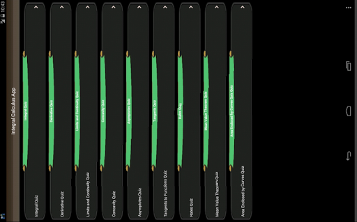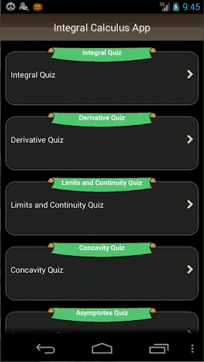 This app reinforces a high-school level knowledge of derivatives, integral calculus, limits, concavity, asymptotes, tangents to curves, areas enclosed by curves, mean value theorem, Riemann sums, inflection point and rate related concepts, convergent and divergent series. If you struggle with Calculus, you 're not alone. The purpose of this app is to provide practice, leading to a sense of confidence, that too many students in high school or college never achieve. Learning calculus only requires time practicing fundamental concepts. Too many students give up when they have the ability to understand Integral Calculus concepts. Finally, a mobile app has arrived that makes learning easy. Most quiz questions are simple enough to facilitate learning, yet rigorous enough to teach the concepts.If you are taking the AP calculus AB exam, this app will help you prepare for it. If you are taking Calculus I or II in college, this app is ideal to learn with.