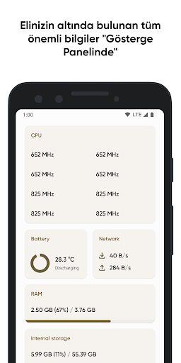 • Özelleştirilebilir widget, pil, işlemci ve bellek hakkındaki bilgileri doğrudan ana ekranınızda gösterir;