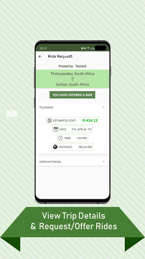 The app is to connect people who are offering or requesting a ride to any place in SA
