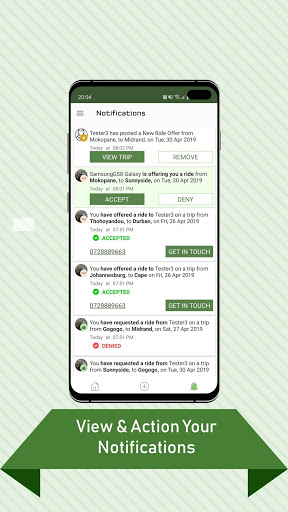 - Users will be notified of trip requests/offers, after which they'll accept or deny.