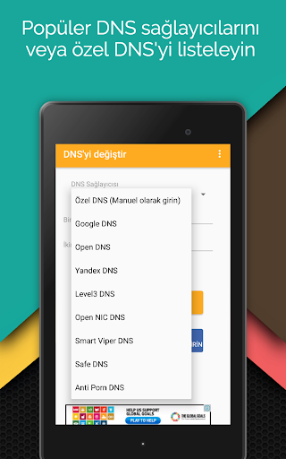 Change DNS, en güçlü DNS Değiştirici aracıdır. Kök gerektirmez ve hem Kablosuz hem de Mobil Veri bağlantısı üzerinde çalışır.