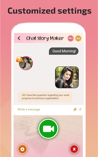 -GO Ayarlar İki karakter görebileceğiniz iki karakter nerede görebilirsiniz. Sohbet hikayeleri oluştururken ve mesajlaşma hikayeleri videosunda gösterilen adını değiştirmek için - Texting Stories Maker App Video - Profil Picture Düğmesine basın ve her iki karakterin profil resimlerini seçin. Sohbet hikayeleri oluştururken ve manifatura hikayeleri videosunda gösterilirken ve manifatura uygulaması videosunda -Now Ana ekrana geri dönün ve Kayıt Başlat