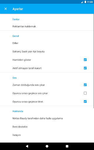 Satranç saati, arkadaşlarınızla veya ailenizle kolayca Satranç oyunları oynamanıza izin verir. Kurşun Satranç, Blitz Satranç, Hızlı Satranç, Fischer Modus ve özel varyasyonları destekler.