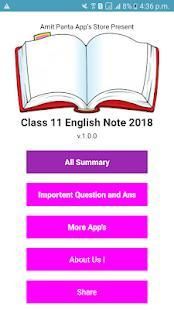 There you can get the android apps APK installed on your device. 20,000+ users downloaded English Note For Class 11 latest version on 9Apps for free every week! More features are involved in this new version. This hot app was released on 2018-04-04. Download and play this free app for android mobile phone now!