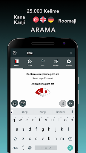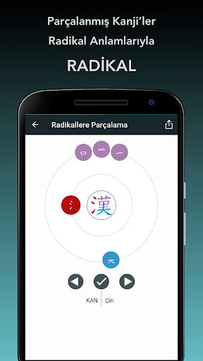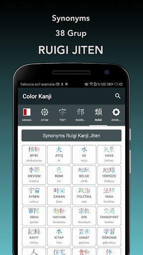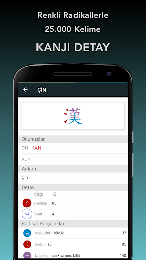 Renkli çizgi sıralı animasyonlarla Kanji çizmeyi öğrenebilirsin.