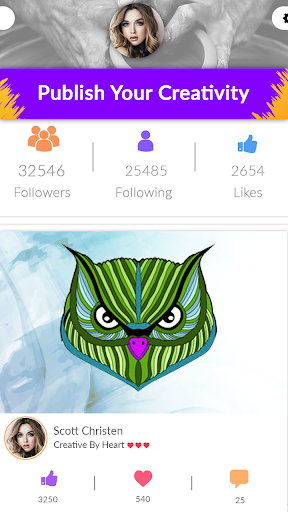 Bu boyama oyununun en iyi kısmı, en sevdiğiniz sanatçıyı takip edebileceğiniz ve takipçilerin sanatsal boyama tasarımlarınızdan alabilmenizdir. Açıkçası, sanatınız tüm kullanıcılardan fantastik olduğundan daha fazla sevebilirsin. Boyama kitapları ile takipçilerden ve beğenebileceğiniz, rahatlamanın en iyi yolu budur. Renkli resimlerinizi doğrudan takip ettiğiniz duvarınıza alın, bu renklendirme oyunda harika sanatçıların postasından ilham alın.