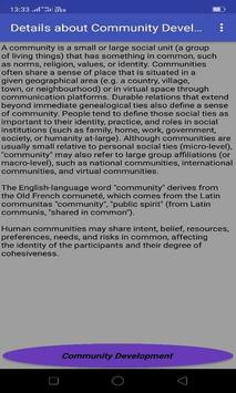 Community development helps to build community capacity in order to address issues and take advantage of opportunities, find common ground and balance competing interests.