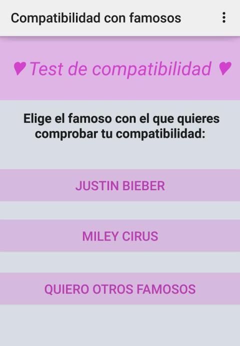 Also try our way "Famous" to know your compatibility with 'celebrities' of the moment.