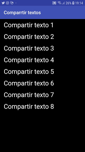 আমি কোনও অ্যাপ্লিকেশন দিয়ে পাঠ্য ভাগ করার জন্য একটি বোতাম অন্তর্ভুক্ত করেছি, যেমন: ইমেল বা একটি ইনস্ট্যান্ট মেসেজিং অ্যাপ্লিকেশন সঙ্গে। এটি অ্যাপ্লিকেশনটিকে বার্তা লিখতে সহায়তা করে অথবা যদি ব্যক্তিটিকে প্রয়োজন হয় তবে একটি পাঠ্য লিখতে বা একটি পাঠ্য লেখার জন্য একটি পাঠ্য লিখতে সক্ষম হয় অথবা অন্য অ্যাপ্লিকেশনে পাওয়া যায় না এমন একটি বড় অক্ষর আকারের সাথে এটি লিখতে ভাল।