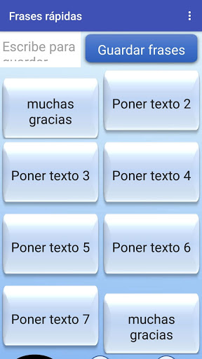 সর্বশেষ সংস্করণে আমি প্রতিটি ব্যক্তি ব্যবহার করে এমন শব্দ বা বাক্যাংশগুলির একটি ব্যক্তিগতকৃত যোগাযোগ বাতি তৈরি করার জন্য একটি নতুন বিকল্প তৈরি করেছি। আপনাকে কেবল প্যাকটিতে পাঠ্যটি প্রবেশ করতে হবে এবং "বাক্যাংশ সংরক্ষণ করুন" বোতামটি দিতে হবে, তারপরে একটি তালিকা যেখানে আপনি সেই পাঠ্যটি স্থাপন করতে কোন বাটন বা বিকল্পটি নির্বাচন করতে পারেন। তারপরে আপনাকে কেবল পূর্বে সংরক্ষিত পাঠ্যটি শুনতে বা বলতে বা বলার জন্য প্রতিটি বাটন / বিকল্প দিতে হবে।