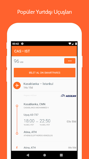 * Akıllı Filtrelemeleri kullanarak (fiyat,süre,uçuş derecelendirmeleri) ile en uygun uçuşları bulun.
