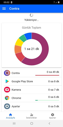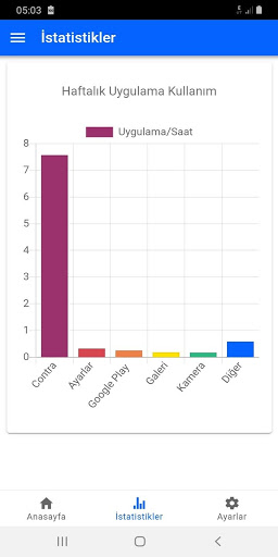 CONTRA, telefonda geçirdiği fazla zamanı azaltmak isteyen kullanıcılar için, harcanan zamanı hesaplayıp grafiklerle gösteren ve alarm mesajlarıyla kullanıcıyı uyarabilen bir uygulamadır. Farkındalığı artırmak ve telefonda geçirilen zamanın sınırlandırılmasına yardımcı olmak amacıyla geliştirilmiştir.