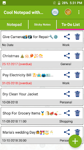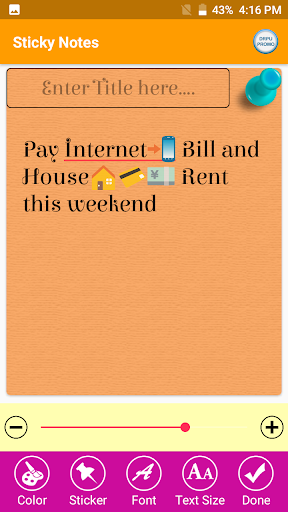 * Notlar ve Sevimli Hatırlatma Chits'i oluşturun ve kaydedin. Herkes için yararlıdır ve cep telefonunuzun gücünü yaratıcılığınızı ve verimliliğinizi çoğaltmak için kullanmanıza izin verir.