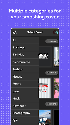 Cover Maker is packed with over 400 custom made and perfected Cover Photos and they are separated into plenty of categories. Each Cover Photo has its own custom presets for faster and easier creations. Feel free to change these presets and go creative with any Cover Photo.