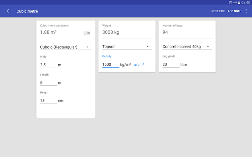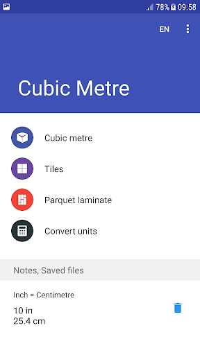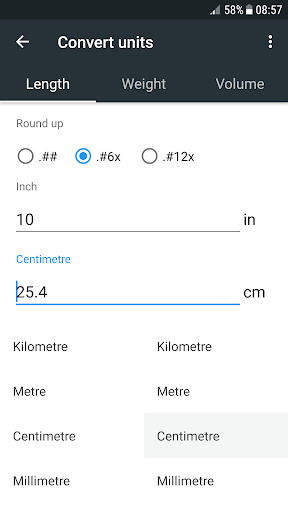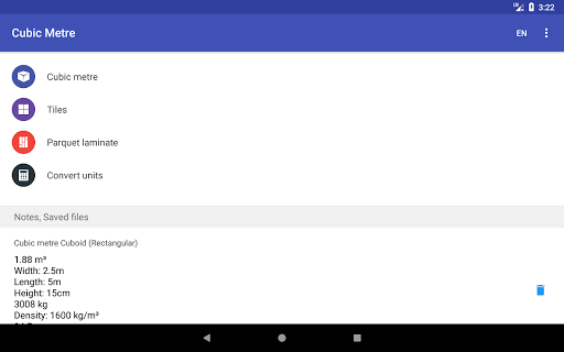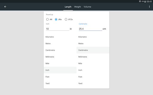 Gallon, Quart, Pint, Ton (USA, GB); Tiles: you can save tiles; Convert units: Menu button (you can hide the list), Temperature