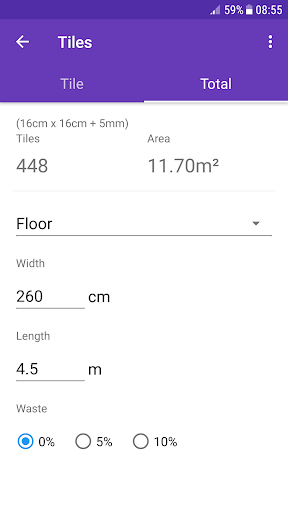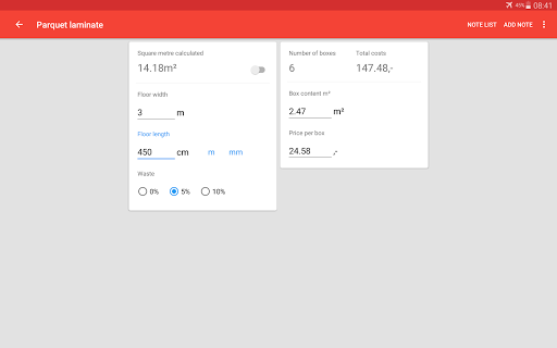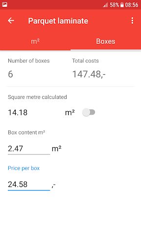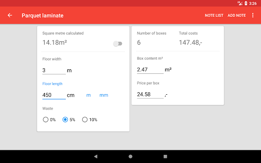 •Parke, laminat: metrekare, atık ve paket maliyetleri.