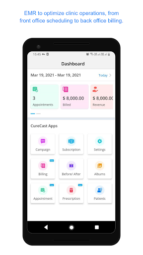 CURCAST EMR, EHR ve Uygulama Yönetimi Yazılımı, çevrimiçi klinik notlar, çizelgeleri, tıbbi fatura, resimlerin ve daha önce çevrimiçi olarak çevrimiçi olarak takip etmeleri gereken özel doktorlar için teknik elektronik tıbbi rekor veya EMR uygulamasıdır. Curecast'ın Play Store Android uygulaması, eşsiz bir mobil EMR, EHR veya uygulama yönetimi yazılımı deneyimi sunar. Her zaman, Android Telefonunuz, PC, Mac, Masaüstü, Laptop, iPhone veya iPad cihazınızdan herhangi bir yer, uygulama rutininize ek bir hareketlilik ve verimlilik katmanı ekler.