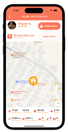 DogGO’da dostunun nerede olduğunu haritadan takip edebilir, çiş kaka bildirimlerini alabilir, yürüyüşten fotoğraf talep edebilir ve yürüyüş sonunda gezdirme raporuna ulaşabilirsin. Bakım hizmetinde ise, dilersen kendi evinde, dilersen bakıcı evinde hizmet alabilir; dostunun bakıcısını kendin belirleyebilirsin. Dostundan tüm gün boyunca bildirimlerle haberdar olabilir, bakım hizmetine dahil olan yürüyüşleri de haritadan takip edebilirsin. Ondan ayrı geçen günlerinde onunla kavuşmayı huzur içinde bekleme zamanı!