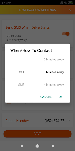 Sürerken, DDialer, ETA'yı varış noktaları için hesaplayacaktır.DDialer, hesaplanan ETA'ya dayanarak yolcularınızı otomatik olarak arayacak veya mesaj atacak.