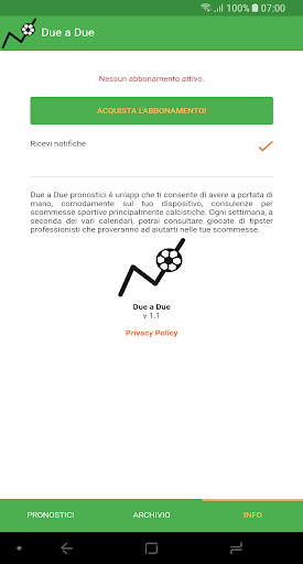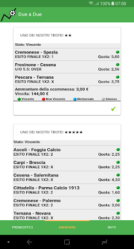 Due a Due pronostici è un'app che ti consente di avere a portata di mano, comodamente sul tuo dispositivo, consulenze per scommesse sportive principalmente calcistiche. Ogni settimana, a seconda dei vari calendari, potrai consultare giocate di tipster professionisti che proveranno ad aiutarti nelle tue scommesse.