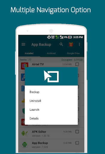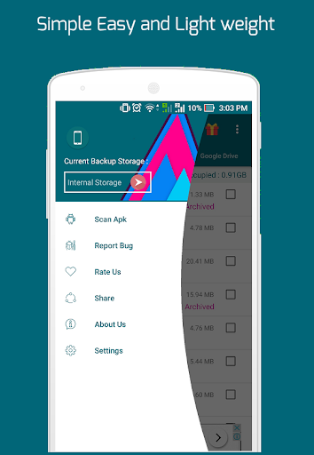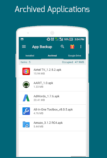 Bu uygulama, uygulamanızı dahili depolama, harici depolama ve ayrıca bir sürücünüzde yedekleyin.