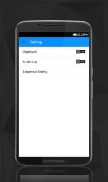 2.It floats on your phone screen so that you can easily access all setting with one touch, also you can hide it with a long press.
