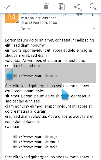1. Kabaca URL'leri seçin. Seçimin ayrıca ek metin veya beyaz boşlukları içermesi önemli değildir. 2. "Paylaş" sembolüne basın.