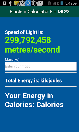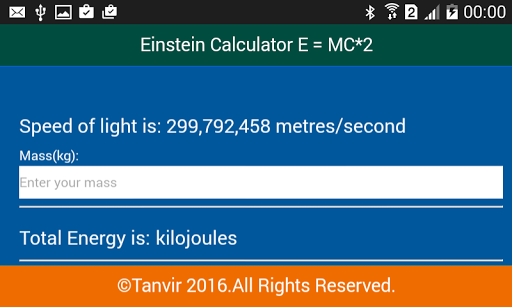 To calculate total Energy in Kilo Joules please enter a value in Kilogram. Then it calculates fastly with any given value.