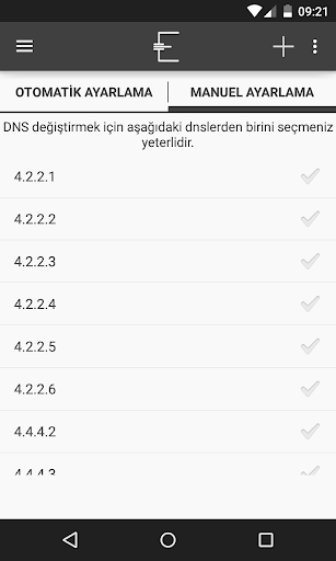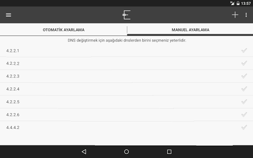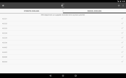 2. "Manuel Ayar" da kullanıcı mevcut listede ki DNS adreslerine tek tıklamayla DNS bilgilerini güncelleyebilir.