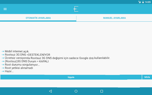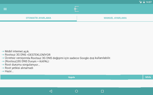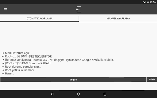 Bu araç Android kullanıcılarının kolayca ROOTSUZ veya rootlu olarak 3G ve Wifi DNS bilgilerini değiştirebilmelerini sağlamaktadır.