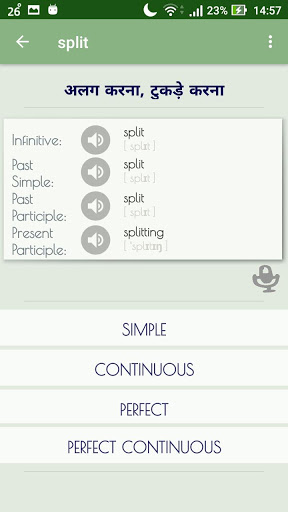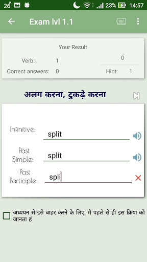 in the exam mode on the General list and on your own list “Favorites”. (If your answer is correct, you will listen to the high-quality pronunciation of the verb.).