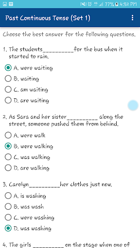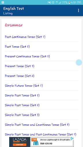 Bu uygulamanın İngilizce anlayışınızı test etmek için kullanımı kolaydır.Tek yapmanız gereken sınavı başlatmak ve set başına 10 soruyu (çoktan seçmeli) yanıtlamak, sonucu almak ve cevapları kontrol etmektir.Bu eğlenceli.