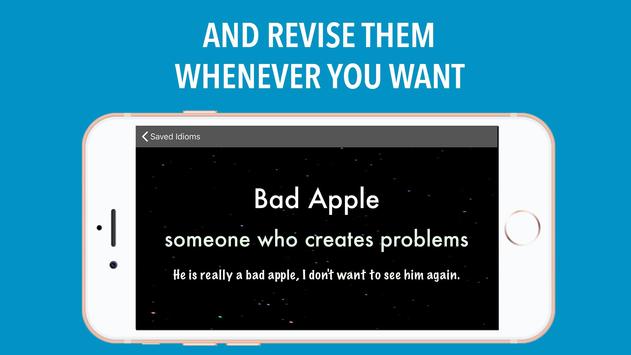 Aklınıza takılan bir deyim olursa 'save' butonuna basarak kaydedebilir ve kaydedilen bu deyimleri hem açıklamaları hem de örnek cümleleriyle beraber istediğiniz zaman tekrar edebilirsiniz.