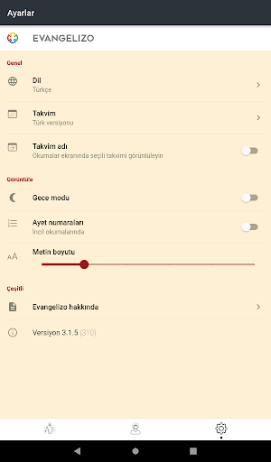 - Karanlık tema (düşük ışıklı ortamlarda, kiliselerde, gözleri yetersiz olanlar için uygun ...)