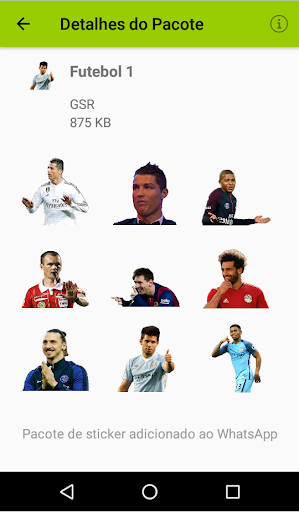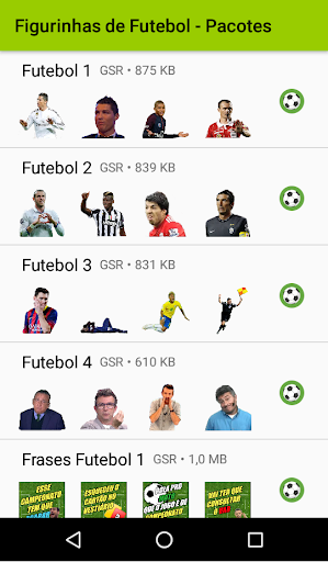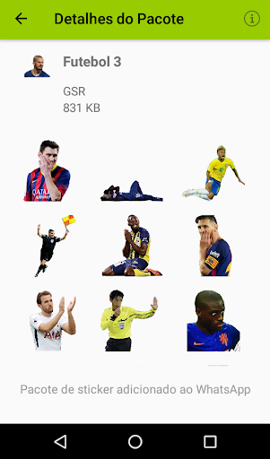 Bu uygulamada, futbol oyuncularının birkaç figürü (etiketlerini) veya Whatsapp mesajlarında gönderilecek futbolla ilgili konuları bulacaksınız.Figürinler, konuşmalarında daha fazla etkileşim ve eğlence getirecekleri yüz veya gestür ifadeleri içerir.