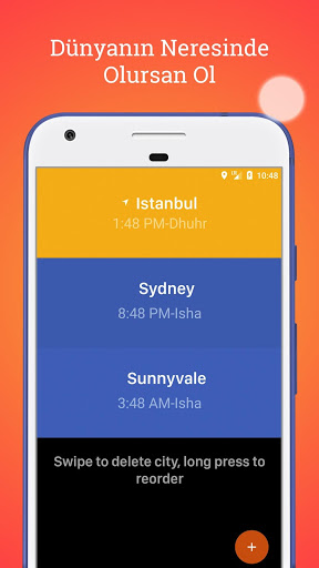 Temiz ve kullanışlı arayüzü ile keyifle kullanacağınız bu uygulama ile bulunduğunuz konumun günlük namaz vakitlerini görebilirsiniz. İsterseniz Dünya’daki farklı merkezleri de ekleyerek o bölgelerdeki namaz vakitlerini de takip edebilirsiniz.