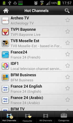 FranceTV allows you to watch many free French television channels on your Android smartphonetablet. Main features are: Support almost all popular French television channels including: France24, BFM TV BFM Business, CNN US, CNN International, BBC UK, BBC News...and much more channels being updated daily. We also support famous international channels Automatically update new channels. Support for adding user channel manually. Manage favorite channels. Sharing with Facebook friends. Does not require flash player.